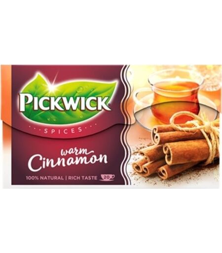 Pickwick Spice Cinnamon Te – Varm og Krydret Nydelse Oplev den rige og aromatiske smag af Pickwick Spice Cinnamon te. Denne sorte te er beriget med den varme og karakteristiske smag af kanel, der skaber en harmonisk balance mellem fylde og krydderi. Perfekt til at nyde på en kølig dag eller som en hyggelig pause i hverdagen. Den omhyggeligt udvalgte kvalitetste og den naturlige krydring giver en beroligende og behagelig smagsoplevelse. Med 20 tebreve i pakken får du en skøn kop te, når du har brug for et øjebliks ro. 20 tebreve pr. pakke Sort te med krydret kanel Rainforest Alliance certificeret Perfekt til hygge og afslapning Trækketid 2-3 min. Sådan tilbereder du den perfekte kop Pickwick Spice Cinnamon te For at få den bedste smagsoplevelse anbefales det at bruge 1 tebrev pr. kop og lade teen trække i 2-3 minutter. Ønsker du at brygge en hel kande, kan du bruge 3 tebreve pr. liter vand og lade teen trække i 3-4 minutter. Justér trækketiden efter din præference for en mildere eller mere intens smag. For en ekstra hyggelig oplevelse kan du tilsætte en smule honning eller en skive appelsin, der fremhæver teens varme og krydrede noter. ...
