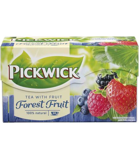 Pickwick skovbærte Pickwick Skovbær er 100% naturlig og indeholder rigtige stykker af brombær, hindbær, jordbær og blåbær. Dette giver teen en dejlig gennemtrængende smag af bær. Type: Sort te Smag: Jordbær, blåbær, brombær og hindbær Indeholder rigtige frugtstykker 20 breve Rainforest Alliance certificeret Tilberedelse af Pickwick Skovbærte: 4 breve pr. liter - Trækketid 3-4 min. 1 brev pr, kop og trækketid 2-3 min. ...