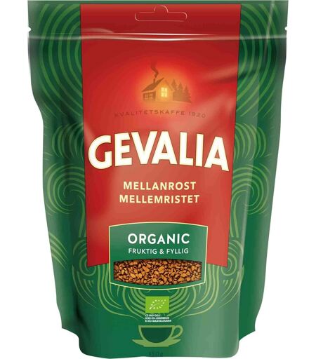 Økologisk instantkaffe med fyldig og velafbalanceret smagMed Gevalia Organic får du en økologisk og mellemtistet instant kaffe, som byder på en velafbalanceret smag. Nyd kaffens fyldighed og den gode aroma i hver en tår. Kaffen kommer fra 100% arabicabønner og skal blandes direkte i varmt vand, for en hurtig og let kop kaffe med en god fyldig smag med en fin balance og frugtige toner. Et oplagt valg når du vil have fordelen af at kunne brygge en kop kaffe på få minutter - men ikke vil gå på kompromis med den gode smag.Tilberedning:150 ml kogende vand tilsættes 2 gram pulverkaffe.Indhold: 150 gBønnetype: 100% arabicaRisningsgrad: MellemristetPosens indhold giver ca. 75 kopper god kaffe ...