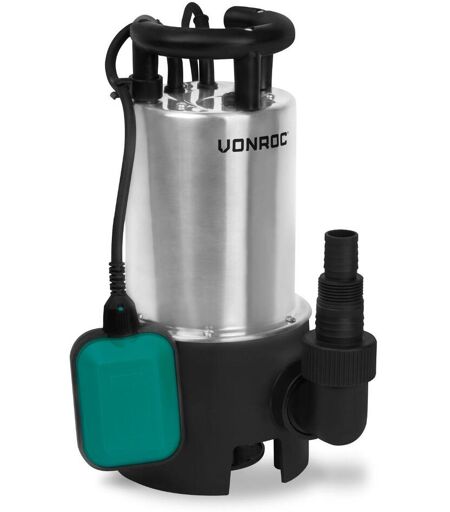 VONROC Dykpumpe - pumpe - 1100W 20000 l/t - Rustfrit stål - med flyder & Termisk Beskyttelse max dybde på 9,0 m. Snavset og rent vand