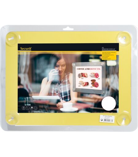 Securit Window Plakatramme – kreativt og iøjefaldende vinduesskiltSecurit er skaberen af den originale chalkmarker og har siden 1987 fortsat med at udvide og udvikle et sortiment der kombinerer deres professionelle varemærke med innovative designs inden for b.la. tavler og kridtkunst. I dag bruges Securits produkter af stort set alle typer mennesker og kan bruges til både professionelle og kreative formål – så uanset om du er forretningsmand, karrierekvinde, hipster, kreativ hobbyentusiast, barn eller bedsteforælder, så har Securit et produkt der passer til dig og dine behov.Bliv kreativ og informer dine kunder med denne Securit A3 Window Poster Frame. Et populært valg blandt barer, caféer, restauranter, butikker og kontorer. Indsæt hurtigt og nemt din A3 (eller 2 x A4) plakat, fastgør den til et vindue og tiltræk flere kunder med dette iøjnefaldende vinduesskilt. Denne dobbeltsidede plakatramme har integrerede sugekopper og er nem at fastgøre til dit vindue eller enhver anden glat overflade. Rammen dertil er varmebestandig og brudsikker, så den er modstandsdygtig og holdbar. Farve: GulStørrelse: A3Dobbeltsidet vinduesrammeVær kreativ og informer dine kunder med den iøjefaldende plakatrammeIntegrerede sugekopperLet at fastgøre på vinduer og andre glatte overfladerVarmebestandig og brudsikkerMål (HxBxD): 52,3 x 39,8 x 0,2 cmVægt: 0,5 kg ...
