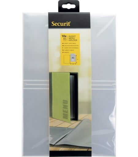 Securit Menukortlommer – ekstra sider til dit menukortSecurit er skaberen af den originale chalkmarker og har siden 1987 fortsat med at udvide og udvikle et sortiment der kombinerer deres professionelle varemærke med innovative designs inden for b.la. tavler og kridtkunst. I dag bruges Securits produkter af stort set alle typer mennesker og kan bruges til både professionelle og kreative formål – så uanset om du er forretningsmand, karrierekvinde, hipster, kreativ hobbyentusiast, barn eller bedsteforælder, så har Securit et produkt der passer til dig og dine behov.Har du et ønske om at tilføje et par ekstra retter til din menu og har derfor brug for mere plads i menukortet? Med Securit A5 menukortlommer kan du nemt udvide dine eksisterende menuomslag og menukort.Lommerne er designet til brug sammen med alle Securit A5-menukort, der med den praktiske elastiske holder nemt kan udvides. Securit menukortlommer er kvalitetslommer fremstillet af PP-plast og du får her en pakke med 10 dobbeltsidede lommer, som hver især kan rumme 4 x A5-sider, altså 40 A5-sider i alt.Sæt let dine nye menusider ind i lommerne, og skift dem ud når det er nødvendigt. For at kunne indsætte flere lommer ind i dine Securit menukort, skal du blot løfte elastikken og tilføje så mange ekstra sider, som du har brug for.Sæt med 10 dobbeltsidede lommer (40 sider)Størrelse: A5Materiale: PP-plastHver lomme kan indeholde 4 stk. A5-siderPasser til alle Securit A5-menukort med elastisk holder ...