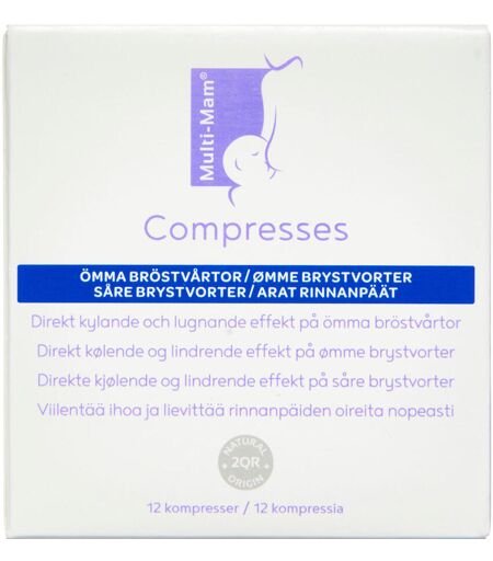 Multi-Mam Kompresser lindrer ømme og sensitive brystvorter. Multi-Mam Kompresser danner en blød og behagelig pude på brystvorten som giver en direkte kølende og beroligende effekt. Multi-Mam Kompresser er ikke-absorberende og laminerede kompresserer, der er imprægneret med plantebaseret gel fra Aloe Bardadensis bladekstrakt. Kompressen skaber det ideelle mikro-miljø for naturlig gendannelsen af huden, mens gelen plejer og fugter vævet. Multi-Mam Kompresser er uden parfume og dermatologisk testet. Dosis og Anvendelse Placer den gel-imprægnerede side af kompressen på den ømme brystvorte. Påfør mindst to gange om dagen i 10 - 60 minutter. Gelen skal ikke fjernes før amning, da formuleringen er sikker for barnet. Kompressen er kun til engangsbrug. Læs den vedlagte produktinformation inden brug. ...