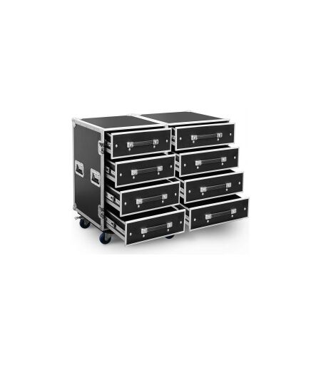 "Roadie" Flightcase with drawer system to store and transport small devices. Robust flightcase made from laminated multiplex Complete with corners and wheel base 2 sections each with 4 d... - TILBUD NU, pris kun 6219,00 (før 9039,00) ingeniørarbejde skuffe ...
