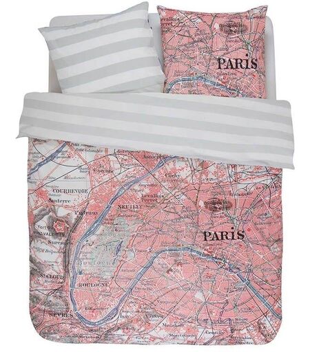 Covers & Co Sengetøj 140x200 cm - Paris Citymap - 2 i 1 dynebetræk - 100% bomulds sengesæt -