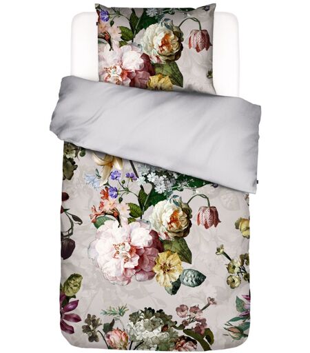 Essenza Blomstret sengetøj 140x220 cm - Fleur grey - Vendbar sengesæt i 100% bomuldssatin - sengetøj