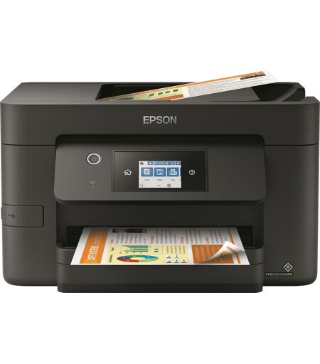 Epson WorkForce Pro WF-3825DWF multifunktionsprinterUdvid dit potentiale med denne A4-multifunktionsinkjet. Den tilbyder udskrivning af høj kvalitet og til lave priser samt fleksible, trådløse løsninger.Tænk stort med denne multifunktionsprinter med dobbeltsidet udskrivning og enkelt-scanning og fax i helt op til A4-størrelse. Du vil kunne komme hurtigt igennem opgaverne med udskrivningshastigheder på op til 21 sider/min. i sort og en automatisk A4-dokumentføder (ADF) på 35 sider. Dertil kommer det omkostningseffektive blæk og de fleksible, trådløse tilslutningsmuligheder som Scan-to-Cloud.Specifikationer: Produkttype: BlækprinterUdskrivningsteknologi: FarveType faxmaskine: Super G3 - almindeligt papirMånedlig driftscyklus (maks.): 26000 siderMaksimal udskrivningshastighed: Op til 21 spm (mono) / op til 10 spm (farve)Maksimal udskrivningsopløsning: Op til 4800 x 2400 dpi (mono) / op til 4800 x 2400 dpi (farve)Maks. printeropløsningsklasse: Op til 4800 x 2400 dpi (mono) / op til 4800 x 2400 dpi (farve)Scanning: 1200 x 2400 dpiOriginalstørrelse: 215.9 x 355.6 mm (maks.)Dokumentføder kapacitet: 35 arkMediestørrelse: 216 x 1199 mm (maks.)Medietype: Konvolutter, almindeligt papir, fotopapir, skinnende fotopapir, mat papirStandard mediekapacitet: 250 arkAutomatisk duplikering: Ja (udskriver)Interface: USB 2.0, Gigabit LAN, Wi-Fi(n), USB-værtAirPrint-aktiveret: JaKontormaskineegenskaber: Scan til e-mail, scan til mappe, scan til Cloud, scan til FTP, scan til PCDimensioner (B x D x H): 42,5 cm x 37,8 cm x 24,9 cmVægt: 8,8 kgMiljømæssige standarder: ENERGY STAR kvalificeret ...