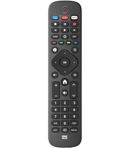 One for all Philips TV-udskiftningsfjernbetjening kræver ingen opsætning og fungerer med populære Philips-tv''er samt mange hi-fi-enheder. Med læringsfunktionen kan du nemt tilpasse fjernbetjeningen til dine egne behov, så der ikke mangler nogen knap. Philips TV-udskiftningsfjernbetjeningen har 3 praktiske genvejsknapper til streamingtjenester og drives af AAA-batterier (2x). ...