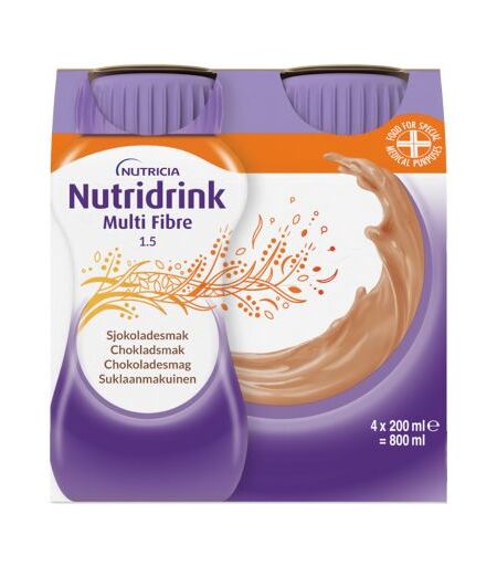 Nutridrink Multi Fibre er en fuldgyldig ernæringsdrik med en energitæthed på 1,5 kcal/ml. Nutridrink Multi Fibre er tilsat en blanding af 6 forskellige kostfibre. Nutridrink Multi Fibre er beriget med alle essentielle mineraler, vitaminer og sporstoffer. Til ernæringsmæssig behandling af sygdomsrelateret underernæring og/eller ved øgede ernæringsmæssige behov. Fuldgyldig, energirig ernæringsdrik tilsat MF6 fiberblanding. Glutenfri. Laktosefattig. Dispenseringsform Flydende. ...