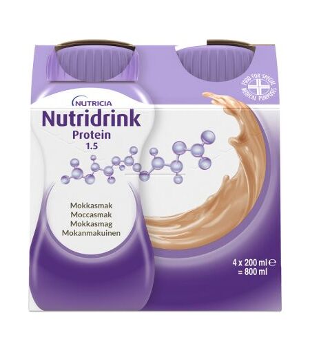 Nutridrink Protein er en velsmagende ernæringsdrik med højt proteinindhold og et afbalanceret næringsindhold. Nutridrink Protein giver et tilskud til den normale kost af protein og energi samt vitaminer, mineraler og sporstoffer. Andre pakningsstørrelser Nutridrink Protein findes i 6 forskellige smagsvarianter: abrikos, jordbær, chokolade, mokka, skovbær og vanilje. Nutridrink Protein findes også i en mix pakke. Dispenseringsform Ernæringsdrik ...