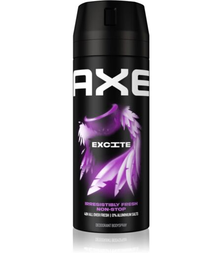 Axe Excite, 150 ml, Deodoranter og antiperspiranter til mænd, Uanset hvilket program du har for din dag, kan du glemme alle bekymringer om svedlugt. Deodoranten Axe Excite forhindrer en ubehagelig faux pas med kropslugt. Den giver din hud en dejlig duft og vil bekæmpe den lugt, der opstår, når sved på huden reagerer med bakterier. Takket være en effektiv deodoriserende virkning giver den dig langvarig beskyttelse, så du kan nyde at føle dig frisk og ren hele dagen. Egenskaber: efterlader en langvarig frisk følelse beskytter mod en ubehagelig lugt vil glæde enhver mand Brugsvejledning: Påføres den rene og tørre hud under armene. Kan gentages når som helst i løbet af dagen. Velegnet til hverdagsbrug. ...
