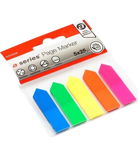 a-series Indexfaner Plast Pil 12x44 mm, 5x25 stk. - det billige valga-series er memoblokke i verdensklasse! Produceret hos en af verdens førende producenter af notes, hvor der ikke bare hersker fokus på at producere kvalitetspapir med stærk lim, hvor både produkter og processer er optimeret efter høje standarder.Indexfaner er et genialt redskab, når du skal markere eller huske særlige steder i en bog, i dine huskesedler eller større papirmængder. Du kan få indexfaner i en lang række forskellige udformninger, designs og farver. Materiale: PlastFormat: 12x44 mm pileformetSampak med 5 farver25 faner pr. farveVandbaseret lim uden opløsningsmidler ...
