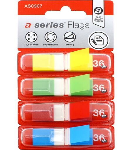 a-series Indexfaner Plast 12x44 mm, 4x36 stk. - det billige valga-series er memoblokke i verdensklasse! Produceret hos en af verdens førende producenter af notes, hvor der ikke bare hersker fokus på at producere kvalitetspapir med stærk lim, hvor både produkter og processer er optimeret efter høje standarder.Indexfaner er et genialt redskab, når du skal markere eller huske særlige steder i en bog, i dine huskesedler eller større papirmængder. Du kan få indexfaner i en lang række forskellige udformninger, designs og farver. Materiale: PlastFormat: 12x44 mmSampak med 4 farver36 faner pr. farveVandbaseret lim uden opløsningsmidler ...