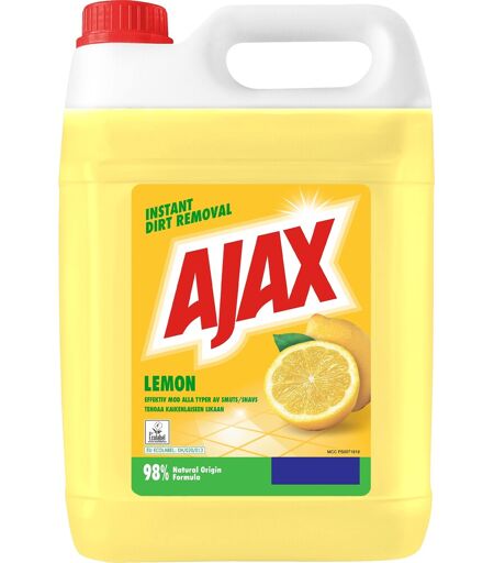Gør rengøring til en leg med Ajax Lemon universalrengøringsmiddel – en kraftfuld alt-i-én løsning til både private og professionelle behov. Med en forbedret formel og frisk duft af citron fjerner dette rengøringsmiddel effektivt snavs og fedt fra alle typer overflader – selv sarte materialer som f.eks. klinker, laminat, stengulve, marmor og keramik. Den praktiske 5 liters dunk gør det ideelt til større forbrug og professionel brug i virksomheder, institutioner og på kontorer. De vigtigste fordele: Effektiv fjernelse af snavs og fedt på alle overflader Skånsom mod sarte materialer som marmor og keramik Stor dunk med brugervenlig emballage – perfekt til erhverv Certificeret med EU-Blomsten Moderne emballage med omtanke Produktet leveres i en robust og ergonomisk 5 L dunk. Både dunk og låg kan genanvendes, og rengøringsmidlets indhold er 95% biologisk nedbrydeligt. Med 98% ingredienser af naturlig oprindelse er Ajax Lemon et klogt valg til dem, der ønsker effektiv rengøring uden kompromis med kvalitet. Produktspecifikationer: Indhold: 5 liter Duft: Citron Anvendelsesområde: Universalrengøring – til gulve, overflader m.m. Egnet til: Marmor, keramik, laminat og andre følsomme overflader ...