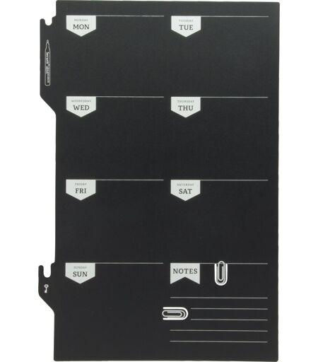 Securit Silhouette Plan Kridttavle – til organisering og planlægning af ugenSecurit er skaberen af den originale chalkmarker og har siden 1987 fortsat med at udvide og udvikle et sortiment der kombinerer deres professionelle varemærke med innovative designs inden for b.la. tavler og kridtkunst. I dag bruges Securits produkter af stort set alle typer mennesker og kan bruges til både professionelle og kreative formål – så uanset om du er forretningsmand, karrierekvinde, hipster, kreativ hobbyentusiast, barn eller bedsteforælder, så har Securit et produkt der passer til dig og dine behov.Organiser dit hjemmekontor eller arbejdsmiljø med denne praktiske Securit Silhouette ugeplan tavle. Tavlen kan hjælpe dig med at planlægge, organisere og strukturer din uge, så du nemt kan holde styr på dine aftaler og gøremål. Tavlen har trykte ugedage og har 3 praktiske clipseholdere til pen, nøgler og fotos så altid har det vigtigste indenfor rækkevidde. Med tavlen medfølger en hvid Securit SMA100 kridtmarker, så du med det samme kan gå i gang med at bruge din nye tavle og organisere den kommende uge. Tavlen kan desuden nemt rengøres med en våd klud, så du til enhver tid hurtigt og nemt kan opdatere tavlens indhold.Du kan med fordel bruge ugekalenderen både på arbejdspladsen eller i privaten, så du altid har et godt overblik over hele ugen, og nemt kan holde styr på forretningsmøder, aftaler, begivenheder og lign. – uanset hvad du vælger at bruge ugetavlen til, er den et perfekt redskab til en effektiv og koordineret hverdag.Farve: SortMål (HxBxD): 44,9 x 30 x 0,3 cmKridttavle med dobbeltsidet skriveflade og påtrykte ugedage3 praktiske clipseholdere til pen, nøgler og fotosPerfekt til at organisere, planlægge og strukturere ugenLet at rengøre med en våd kludSecurit SMA100 kridtmarker medfølger (hvid)Inklusiv selvklæbende vægmonteringspuderVægt: 0,2 kg ...
