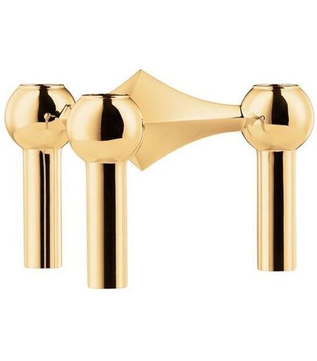 STOFF Nagel Candle Holder H: 6,5 cm - Solid Brass En iøjnefaldende lysestage fra STOFF Nagel, som tilfører en smuk detalje til enhver indretning. Den ikoniske lysestage, som er designet af Werner Stoff for Hans Nagel i 1960'erne, er som en formbar skulptur, der blot venter på at antage form fra dine kreative hænder. Med de mange flotte elementer fra STOFF Nagel er der mange kombinationsmuligheder, og du kan derfor nemt sætte dit personlige præg på lysestagen. Du kan eksempelvis vælge at stable flere lysestager i forskellige højder eller kombinere din stage med en vase eller skål fra samme serie, ligesom at lysestagen kan stå uden kertelys som en smuk dekoration i hjemmet. Til hjerternes fest kan 4 STOFF Nagel lysestager sammensættes med den smukke skål, således at man får en moderne adventslysestage, hvor skålen kan rumme godter og dekorativt pynt. Kun fantasien sætter grænser for, hvordan lysestagen kan sammensættes til en unik lille skulptur i din indretning. OBS: Indeholder kun 1 lysestage. Flere lysestager, skåle, bakker, vaser og kertelys skal tilkøbes. Miljøbillederne viser derfor mulige kombinationer af flere lysestager mv. og mulige anvendelser i hjemmet. Designer: STOFF Nagel Materiale: Massiv messing Mål: Ø: 10,2 cm H: 6,5 cm Vedligeholdelse: Lysestagen er udført i massiv messing, og med tiden vil den derfor få patina. Hvis lysestagen har fået pletter fra oxidering eller har gammel, størknet stearin, kan det fjernes ved at placere lysestagen i varmt vand med en smule citronsyre og en dråbe vaskemiddel. Dernæst kan lysestagens resterende pletter fjernes ved at pudse med pudsemiddel beregnet til messing, så lysestagen får en flot, skinnende overflade igen. ...