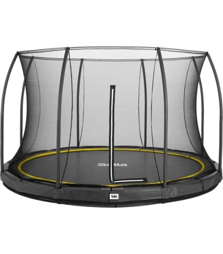 Salta Comfort Edition Ground trampolin inkl. sikkerhedsnetSalta Comfort Edition Ground er en ekstraordinær nedgravningstrampolin som er uovertruffen i sin attraktive prisklasse. Det smukke design passer perfekt til alle omgivelser og er udviklet i henhold til de nyeste strenge standarder, hvilket gør den ekstremt sikker. Stålrammerne i den slidstærke Salta Comfort Edition Ground er galvaniserede og forsynede med en sort, blank belægning.Konstruktionen af stålringen holder sikkerhedsnettet i sin elegante form, og det bløde, fintmaskede net forbliver stramt. Derudover har trampolinen en 20 mm tyk og 20 cm bred kantmåtte, så de dobbeltforzinkede koniske fjedrer er helt afskærmede. Den dobbeltsidede lynlås giver en god passage til trampolinen, så du nemt kan komme ind og lukke af til trampolinen.Dimension: Ø427 cmSpringareal: Ø39 cmTrampolin højde: 20 cmTrampolinhøjde inkl. sikkerhedsnet 210 cmAnbefalet max brugervægt: 120 kgVægt klaret i test: 300 kgCertificering, test: TÜV, CE, EN 71-14Antal ben: 4 stk. – sort farveAntal fjedre: 80 stk. Kantmåtte: 200 x 20 x 0,35 cm ...