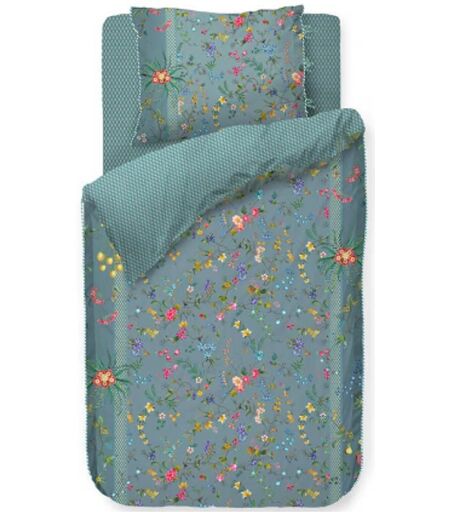 Pip Studio Blomstret sengetøj - 140x200 cm - Petit Fleurs Blue - Sengesæt med 2 i 1 design - 100% bomuld - sengetøj
