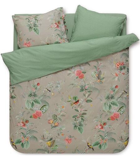 Pip Studio sengetøj - 140x200 cm - Floris Khaki - Vendbar dynebetræk - 100% bomulds sengesæt