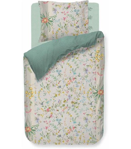 Pip Studio Blomstret sengetøj - 140x200 cm - Petites Fleurs Khaki - Sengelinned med dobbeltsidet design - 100% bomuld -