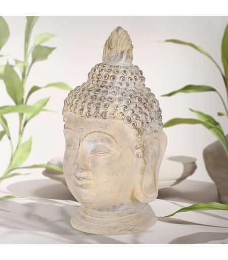 ECD-Germany Buddha hoved statue skulptur Dekofigur Feng Shui sten Polyresin 78cm beige/grå sten figur udsmykning Gartenfigur Asien dekorative objekt