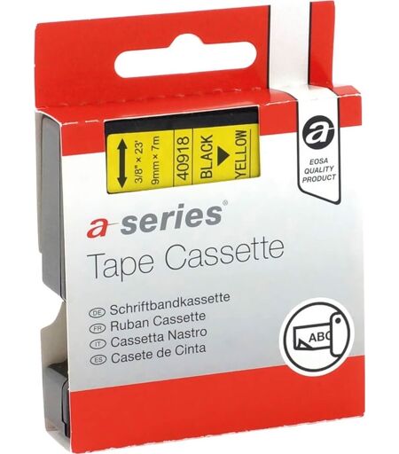 A-Series Labeltape 9mm, Sort På Gul, Dymo 40918
