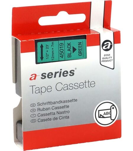 A-Series Labeltape 12mm, Sort På Grøn, Dymo 45019