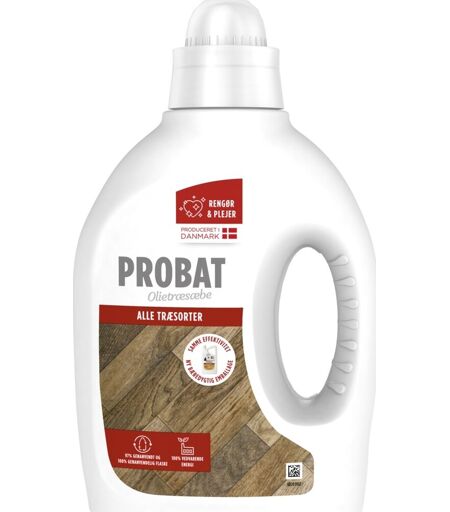 Kvalitetssæbe til rengøring af alle træsorterProbat Træoliesæbe er specielt designet til rengøring og pleje af alle typer af trægulve, både ubehandlede, ludbehandlede, olierede og lakerede. Træoliesæben rengør og plejer i én og samme arbejdsgang og beskytter dine trægulve mod snavs, pletter og slid og bruges af båe professionelle og private til vask og pjele af trægulve. Når træsæben er blevet anvendt få gange, dannes der samtidig en beskyttende hinde på trægulvet, som er med til at modvirke at smuds og snavs kommer ned i gulvet. Træoliesæben fra Probat inderholder mild og plejende kokos- og sojasæbe samt nogle mere effektive rengørende stoffer, så gulvet både plejes og rengøres effektivt. Dertil leveres Probat Træoliesæbe i flasker af 97% genanvendt plast. Indhold: 700 mlTræoliesæbe til alle træsorterRengør og plejer i samme arbejdsgangDosering normal gulvvask: 500 ml til 5 liter vandDosering ubehandlede og nye trægulve:1500 ml til 5 liter vand ...