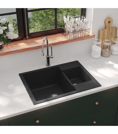 vidaXL dobbelt køkkenvask med overløbshul granit sort