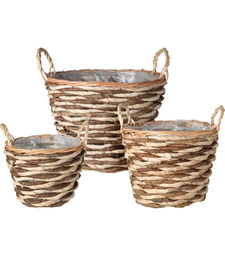Naturlig opbevaring i tre størrelser Dette sæt af tre flettede kurve i majs- og bananblade kombinerer funktionalitet med et smukt, rustikt udtryk. De tre forskellige størrelser gør dem ideelle til opbevaring af alt fra tæpper og magasiner til frugt og accessories. Håndtagene gør dem lette at flytte rundt, og det naturlige materiale tilfører varme og charme til enhver indretning. Perfekte til hjemmet, kontoret eller butiksindretning. Materiale: Majsblade og bananblade Lille kurv mål: 22,5 x 17 cm (højde inkl. håndtag: 23 cm) Mellem kurv mål: 27 x 21,5 cm (højde inkl. håndtag: 27,5 cm) Stor kurv mål: 34 x 26,5 cm (højde inkl. håndtag: 32 cm) ...