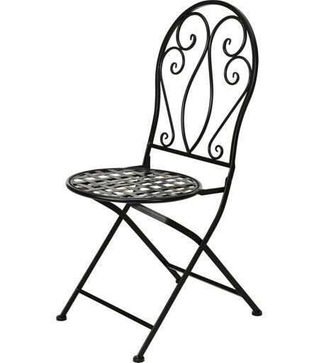 Bistro caféstol, sort i jern/metal Tilføj et strejf af klassisk og romantisk stil til dit udendørsområde med denne elegante caféstol. Stolen passer særdeles godt sammen med små caféborde med mosaikmønstre. Størrelsen på caféstolen gør sig særdeles velegnet til mindre udendørs områder som altaner, små terrasser eller caféer. Specifikationer: Farve: Mat sort ramme Størrelse: 39 x 50 x H94 cm. Vægt: 4,4 kg. Materiale: Metal og jern, sort malet Ben: Metalben, Ø19 mm, 0,55 mm. Tykt Ryglæn: Jernrør, Ø13 mm/Ø10 mm, 1 mm. Tykt Maksimal belastning: 120 kg. EN-581 godkendt Bemærk: Går der hul på malingen og metallet/jernet blotlægges, er der risiko for rust. ...