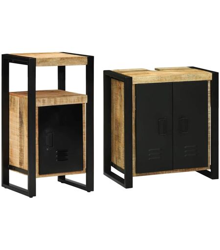vidaXL Badeværelsesmøbel sæt 2 pcs Brun 55 x 35 x 60 cm Rå mango træ Brun 55 x 35 x 60 cm