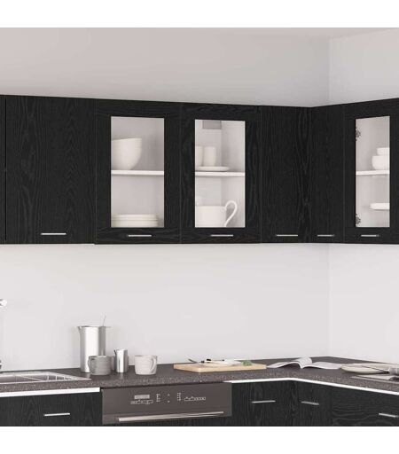 vidaXL Hængende glas skab Sort eg 80 x 31 x 60 cm Konstrueret træ Sort 80 x 31 x 60 cm