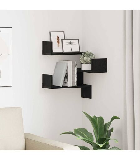 vidaXL Væg Hjørneshylde Sort eg 40 x 40 x 49,5 cm Konstrueret træ Sort 40 x 40 x 49,5 cm