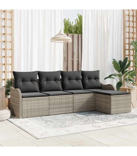 vidaXL Havesofa Sæt med pude 5 pcs Lysegrå Poly rattan Lysegrå 231 x 117 x 85 cm