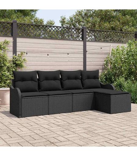 vidaXL Havesofa Sæt med pude 5 pcs Sort Poly rattan Sort 231 x 117 x 85 cm