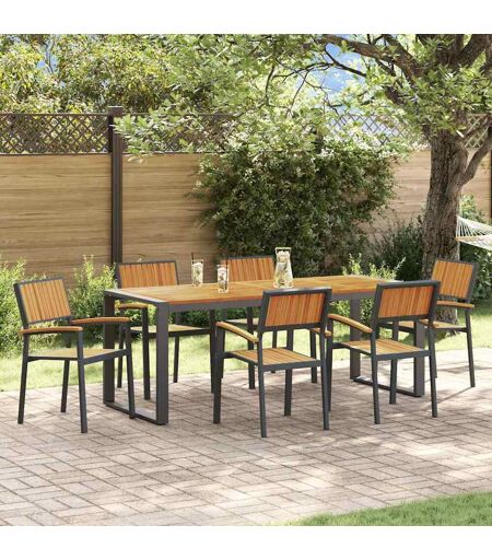vidaXL Have Spisebordssæt 7 pcs Sort og brun 200 x 90 x 75 cm Brun 200 x 90 x 75 cm