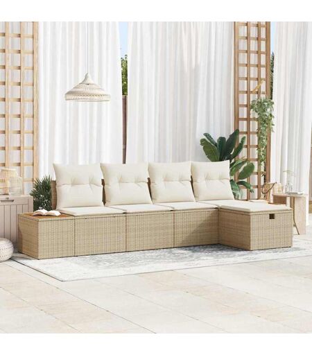 vidaXL Havesofa Sæt med pude 5 pcs Beige Poly rattan Beige 294 x 117 x 85 cm
