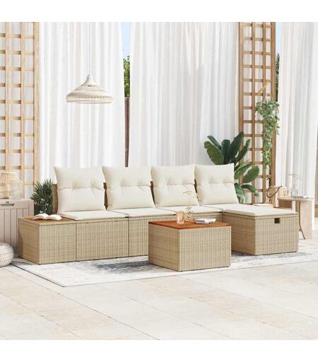 vidaXL Havesofa Sæt med pude 6 pcs Beige Poly rattan Beige 55 x 55 x 37 cm