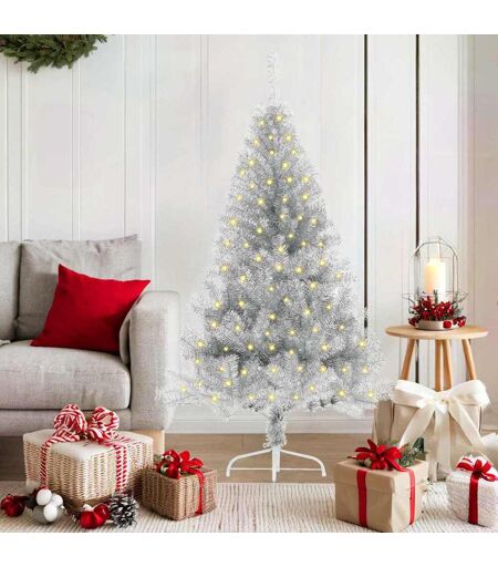 vidaXL Kunstig Forbelyst Juletræ med 150 LED'er Sølv 150 cm PET Sølv 150 cm