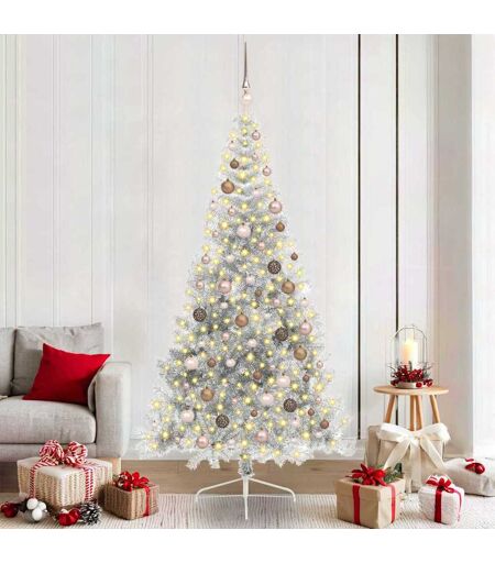 vidaXL Kunstig Forbelyst Juletræ med 300 LED'er Sølv 210 cm PET Sølv 210 cm