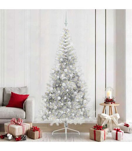 vidaXL Kunstig Forbelyst Juletræ med 300 LED'er Sølv 240 cm PET Sølv 240 cm