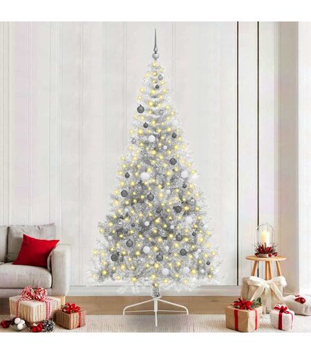 vidaXL Kunstig Forbelyst Juletræ med 300 LED'er Sølv 240 cm PET Sølv 240 cm
