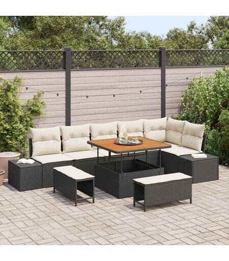vidaXL Havesofa Sæt med pude 9 pcs Sort Poly rattan Sort 100 x 100 x 71 cm