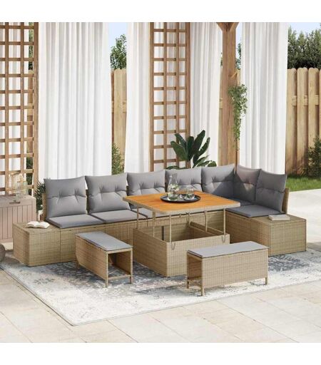 vidaXL Havesofa Sæt med pude 9 pcs Beige Poly rattan Beige 100 x 100 x 71 cm