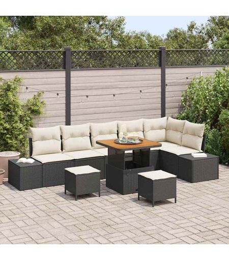 vidaXL Havesofa Sæt med pude 9 pcs Sort Poly rattan Sort 80 x 80 x 71 cm