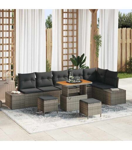 vidaXL Havesofa Sæt med pude 9 pcs Grå Poly rattan Grå 90 x 55 x 71 cm