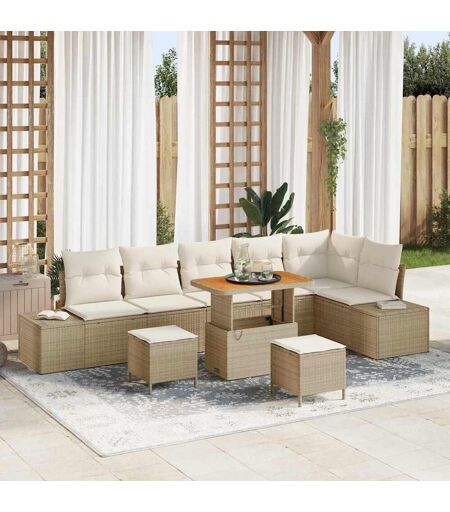 vidaXL Havesofa Sæt med pude 9 pcs Beige Poly rattan Beige 90 x 55 x 71 cm