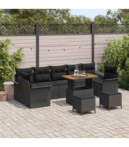 vidaXL Havesofa Sæt 10 pcs Sort polyrattan Sort 90 x 55 x 71 cm