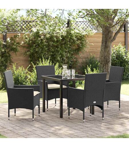 vidaXL Have Spisebordssæt med pude 5 pcs Sort Poly rattan Sort 80 x 80 x 73 cm